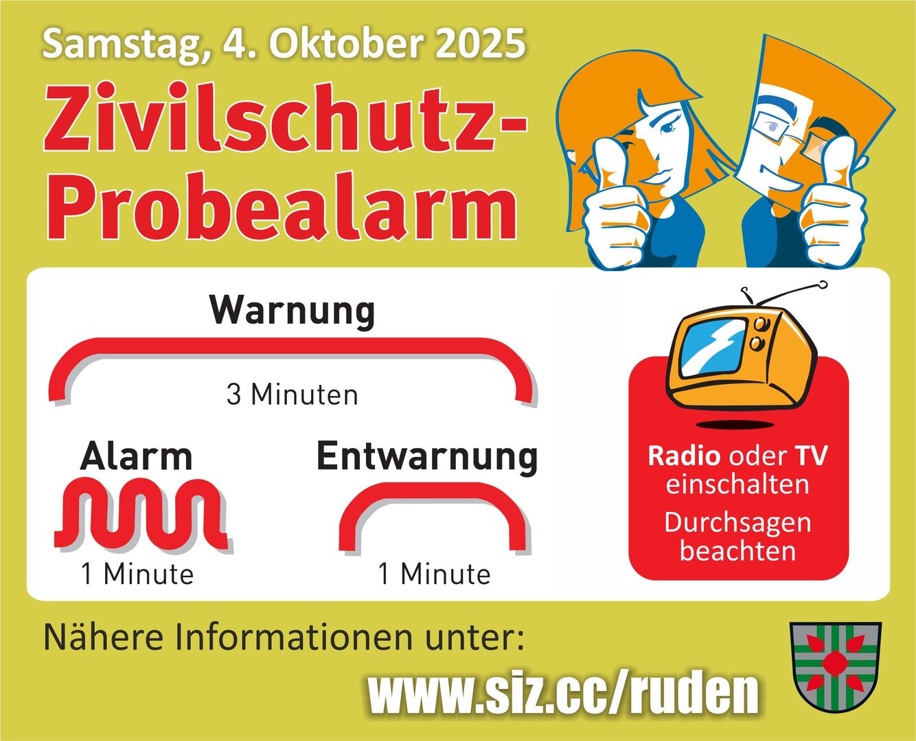 Zivilschutz-Probealarm am Samstag, 04. Oktober 2025