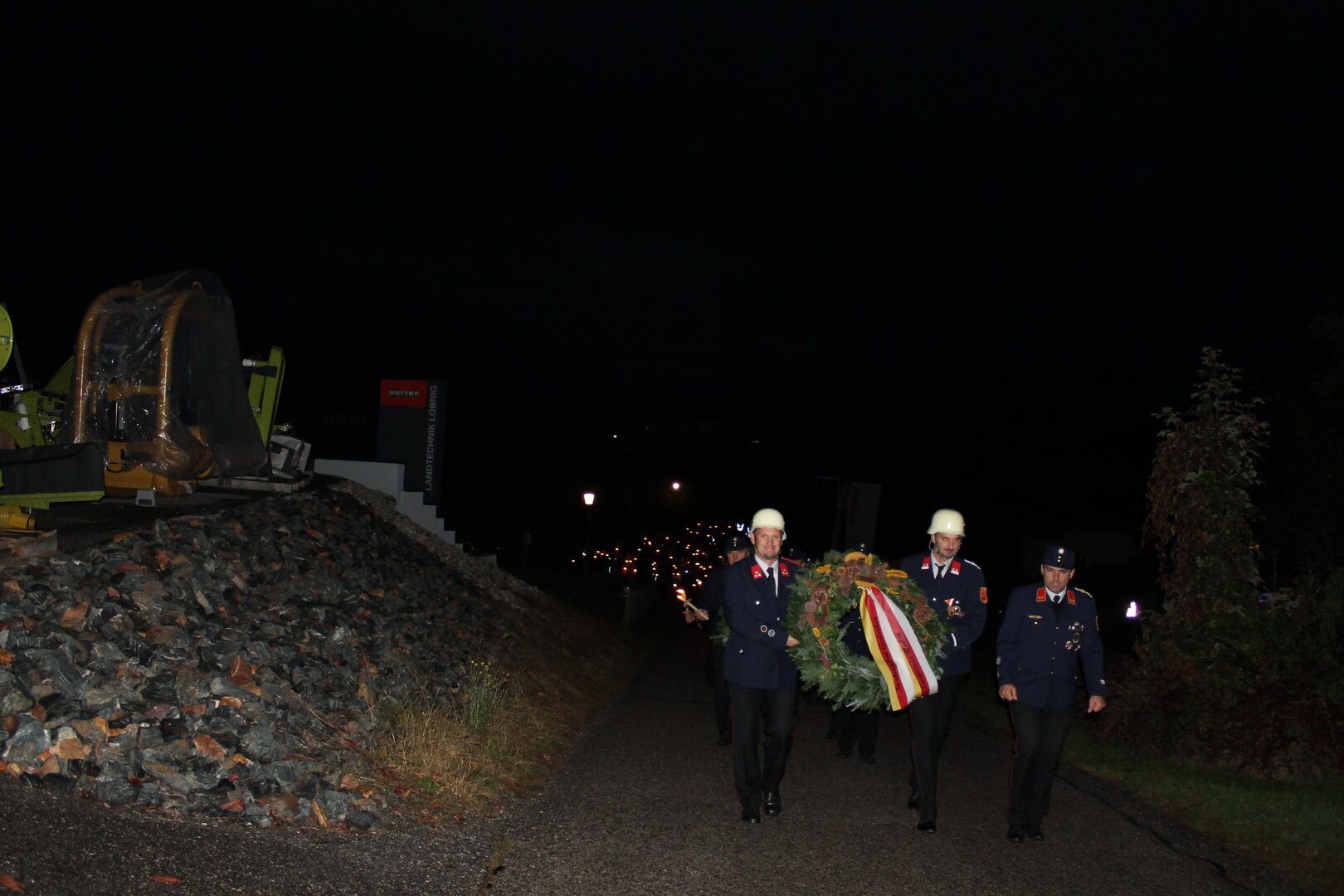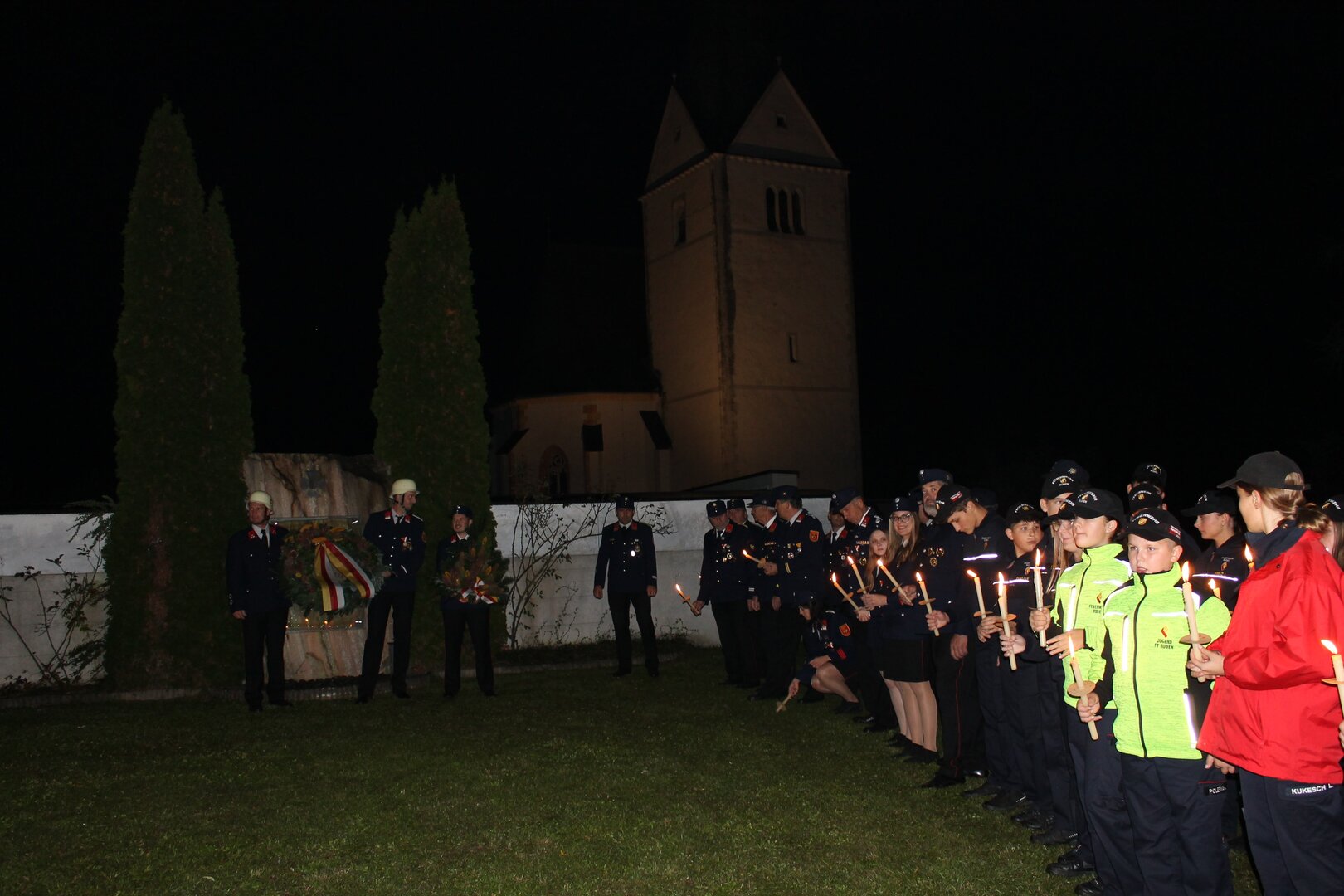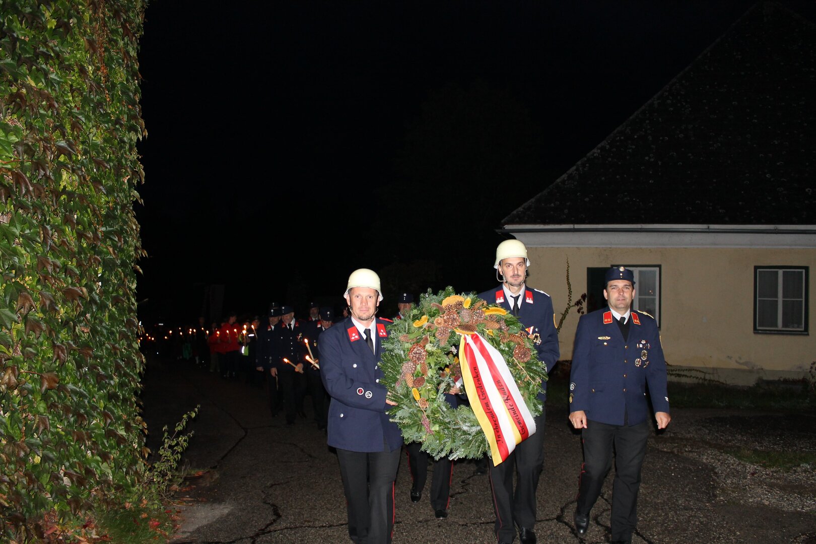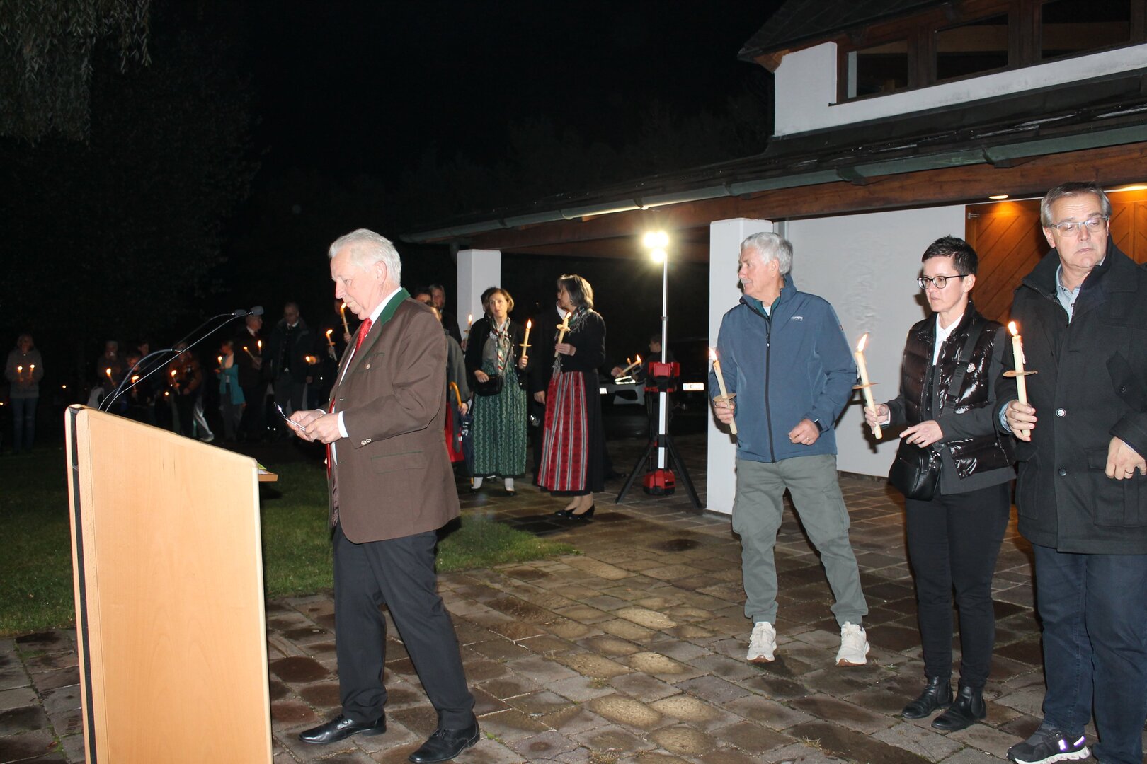 Die Feier begann um 18:30 Uhr beim Gemeindeamt Ruden, von wo aus ein feierlicher Fackelumzug zum Gedenkstein bei der Aufbahrungshalle führte. Dort wurde in einem würdigen Rahmen der historischen Bedeutung dieses Tages gedacht.