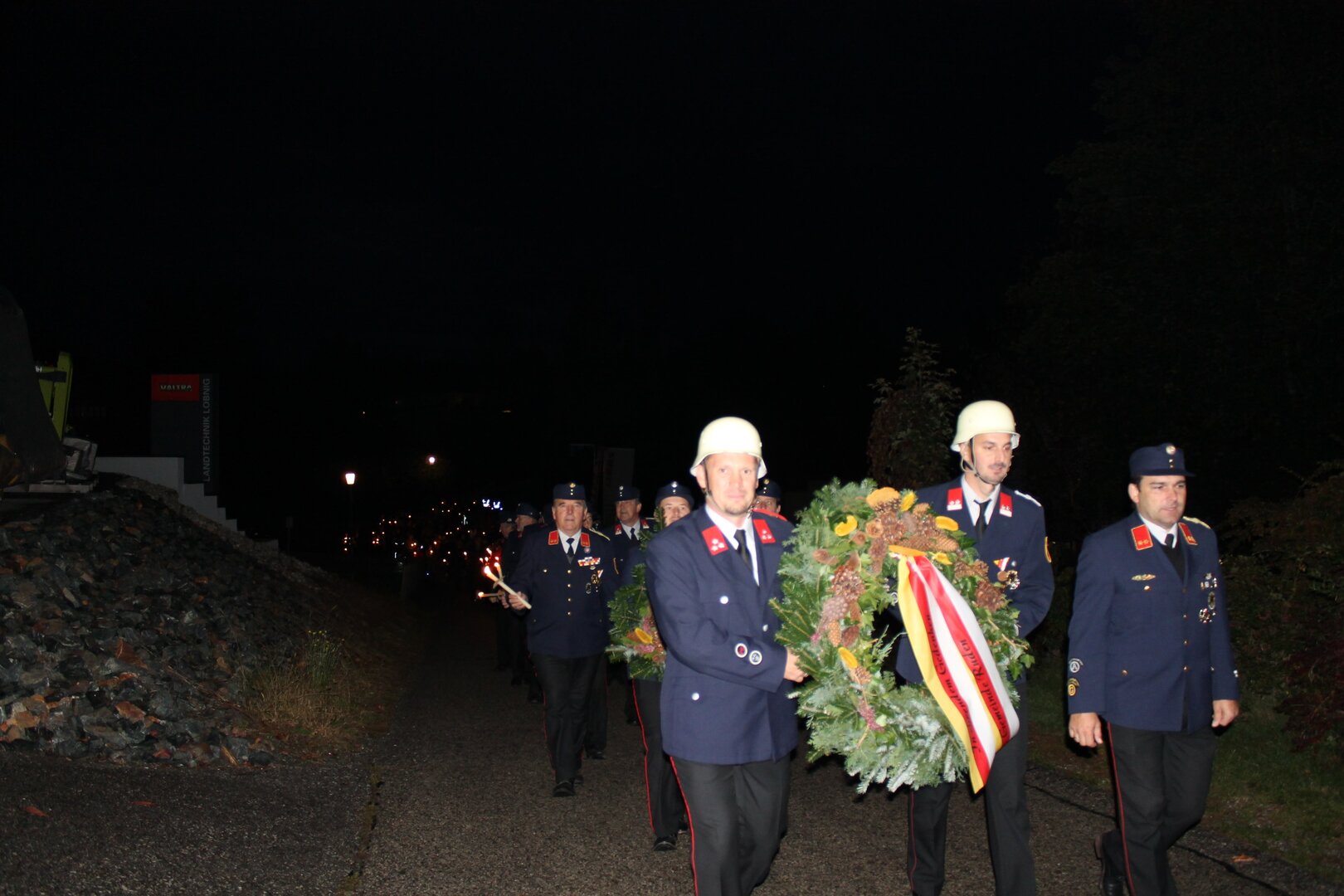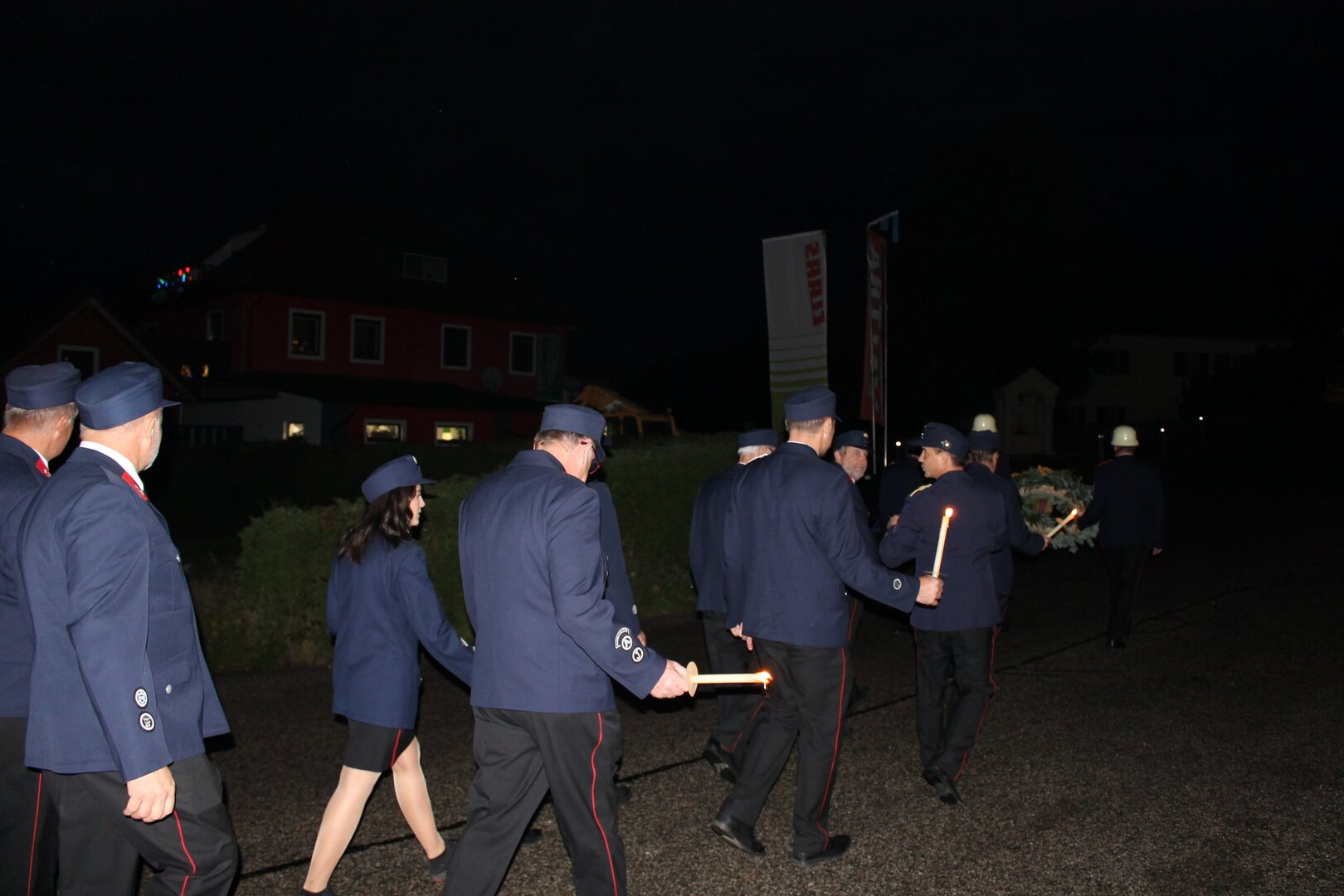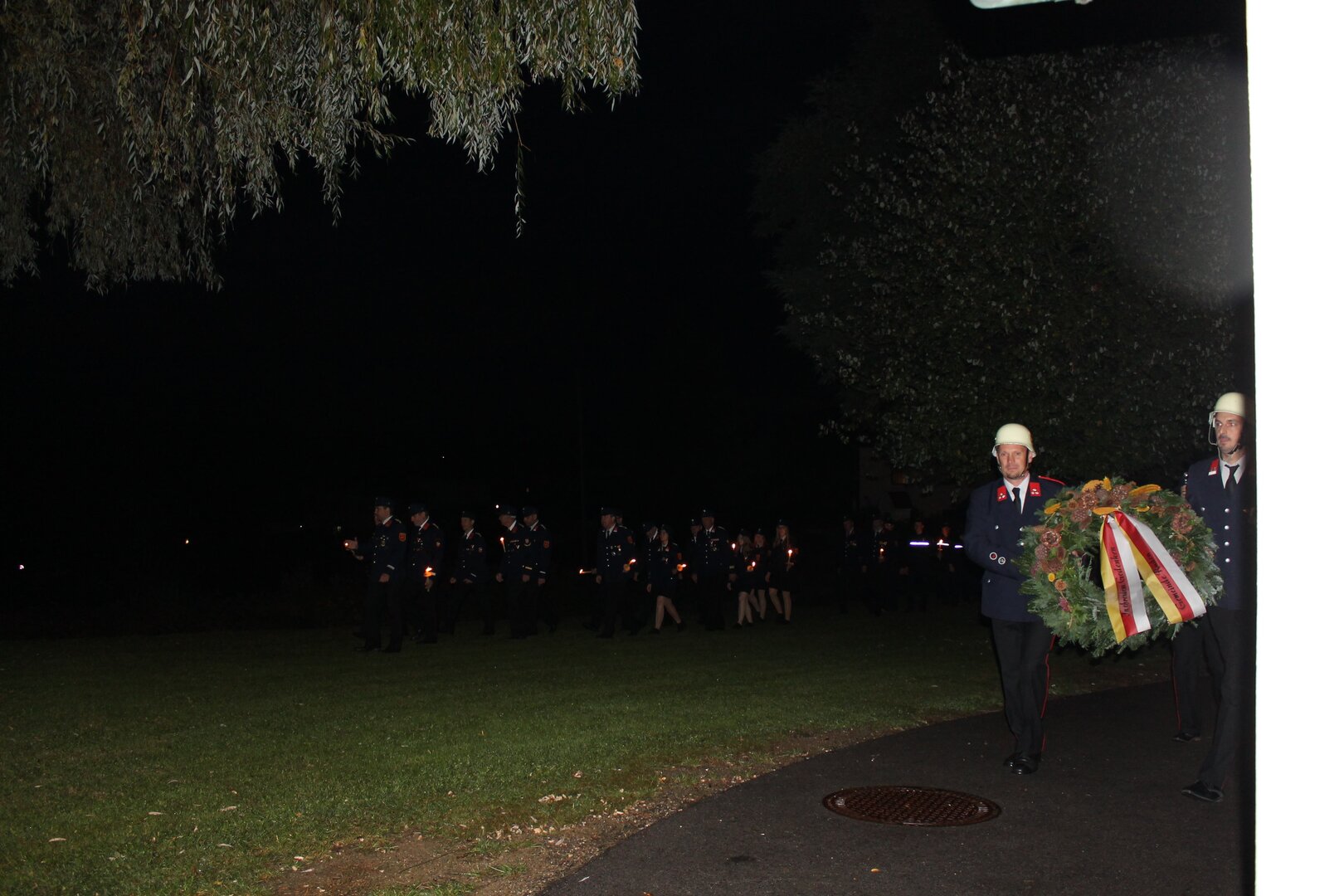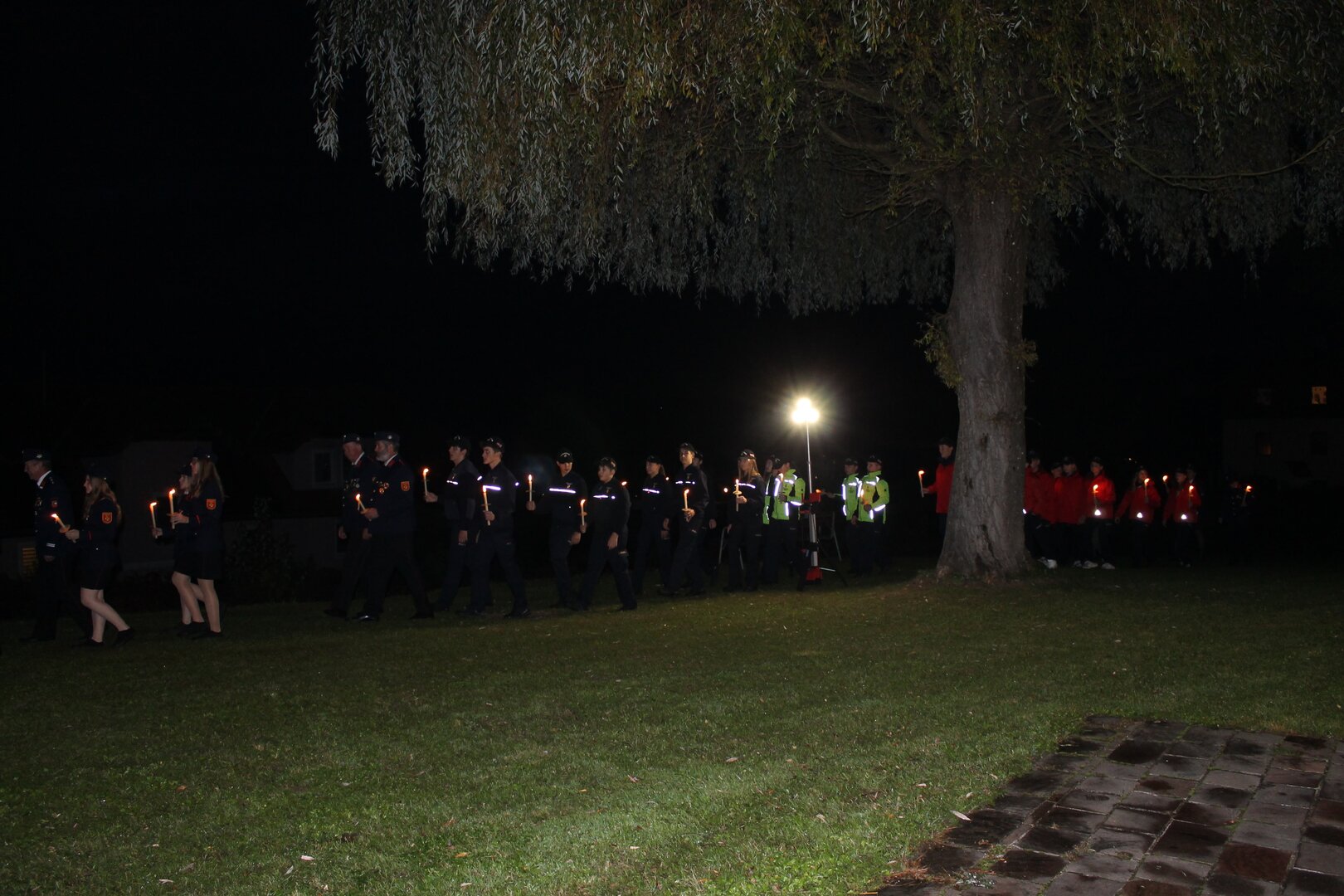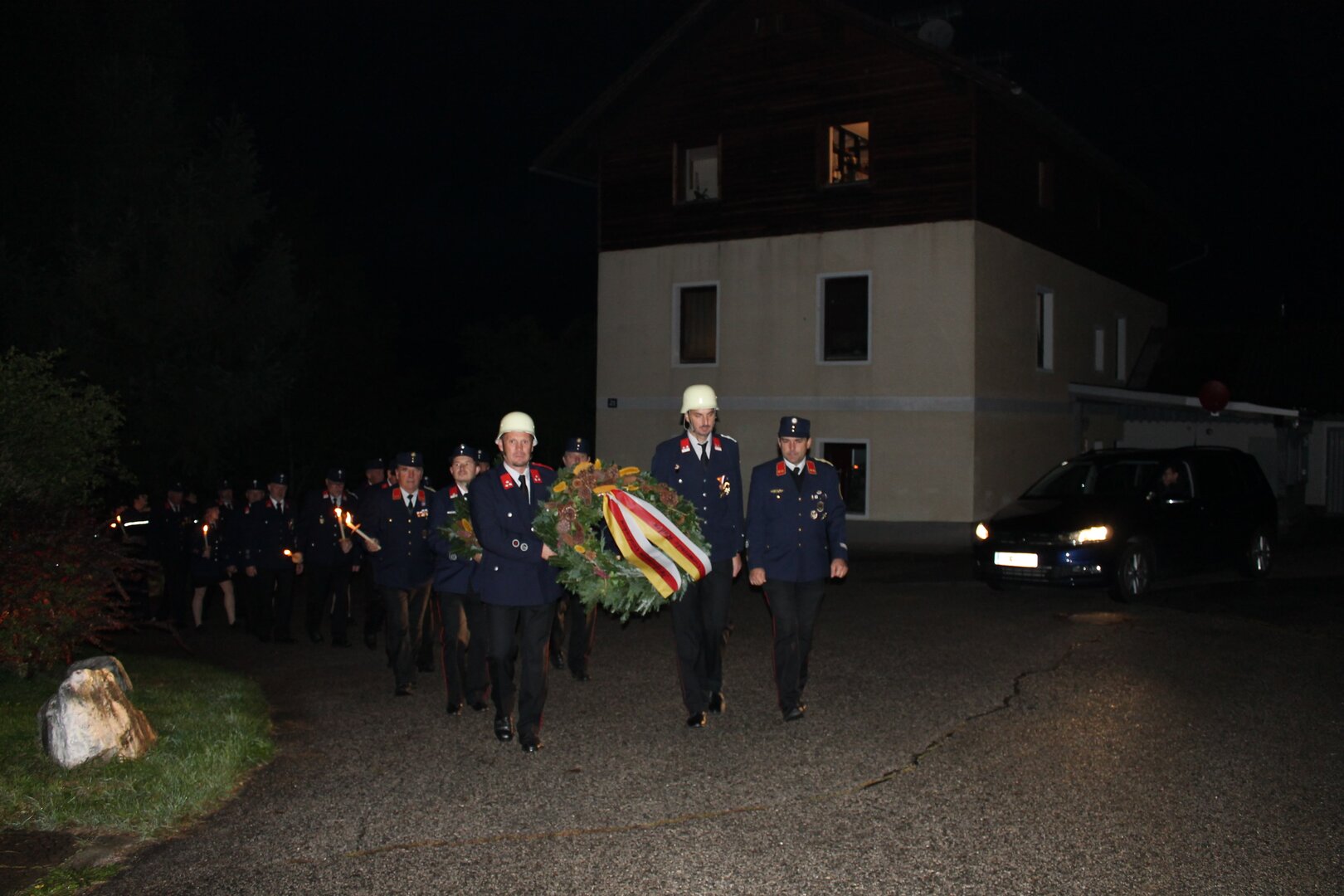 Die Feier begann um 18:30 Uhr beim Gemeindeamt Ruden, von wo aus ein feierlicher Fackelumzug zum Gedenkstein bei der Aufbahrungshalle führte. Dort wurde in einem würdigen Rahmen der historischen Bedeutung dieses Tages gedacht.